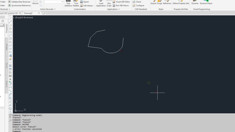 ;;; Draw perpendicular line ;;; Alan J. Thompson, 10.15.09 (defun c:AALPer (/ #Ent #Read) (and (setq #Ent (car (entsel "\nSelect curve: "))) (vl-position (cdr (assoc 0 (entget #Ent))) '("LWPOLYLINE" "ARC" "LINE" "CIRCLE" "ELLIPSE")) (setq lAth'( 2 3 4 5 6 7 8 9 10 11 12 13 14 15 16 17 18)) (setq lstReturnXY'(0 0.05 0.1 0.15 0.2 0.25 0.3 0.35 0.4 0.45 0.5 0.55 0.6 0.65 0.7 0.75 0.80 0.85 0.9 0.95 1)) (while (not (eq 25 (car (setq #Read (grread T 15 0))))) (princ "\rSpecify point for line: ") (redraw) (if (vl-consp (cadr #Read)) (progn (setq ClosestPoint(vlax-curve-getclosestpointto #Ent (trans (cadr #Read) 1 0) T)) (setq END1 ClosestPoint END2 (cadr #Read)) (setq lst (mapcar (function (lambda (a) (polar END1 (angle END1 END2) (* (distance END2 END1) a)) )) lstReturnXY)) (if (< lAct (- (length lAth) 2)) ;;(length lAth) (PROGN (setq lAth (foo lAth)) (setq lAct (+ 1 lAct)) ) (PROGN (setq lAth'( 2 3 4 5 6 7 8 9 10 11 12 13 14 15 16 17 18)) (setq lAct 0) ) ) (grvecs (list 1 (NTH 0 lst) (NTH 1 lst) 1 (NTH (car lAth) lst) (NTH (cadr lAth) lst) 1 (NTH (- (length lst) 2) lst) (NTH (- (length lst) 1) lst) ;;; 1 (NTH 19 lst) (NTH 20 lst) ) ) (fooaa (NTH (car lAth) lst) (NTH (cadr lAth) lst)) ) ) ;_ if ) ;_ while ) ;_ and (redraw) (princ) ) ;_ defun (defun fooaa (p p1 / ) (progn (setq hp (getvar 'HPNAME) i 1 *length*(distance p p1) ang (angle p p1) a (polar p (+ ang (* pi 1.5)) (/ *length* 2.)) b (polar p (+ ang (* pi 0.5)) (/ *length* 2.)) c (polar p ang *length*) ) (grvecs (list -3 a b b c c a)) ) ) (defun foo ( l ) (repeat 1(setq l (append (cdr l) (list (car l)))) ))0 points