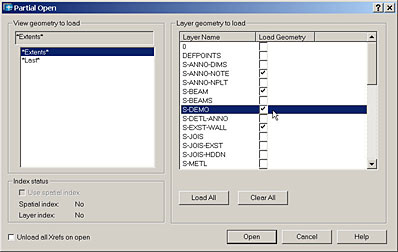 But what if you didn't get all the information you needed? Once a drawing has been partially opened, you can load additional layer geometry using File/Partial Load. The Partial Load feature is only available for drawings that have already been partially opened.