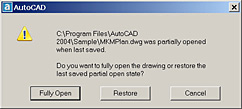 One final note: The partial open/load features can only be used with the AutoCAD format you're using. In other words, if you have A2004 and try Partial Open on an A2000/i/2 drawing, it won't work. Simply open and save the drawing in A2004, then run Partial Open.