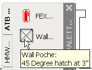 You can drag a hatch from the drawing directly onto the a tool palette. The icon displayed on the tool palette also reflects the hatch parameters, such as angle of the hatch and if it is double-hatched.