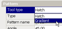 Tool Type: You can edit the hatch tool type and change the hatch from a standard hatch pattern to a Gradient pattern type.
