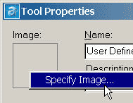 Tip: To add an image to your User-Defined tool, right-click in the Image area and select Specify Image. File types include BMP, JPG, PNG, TIF or GIF.