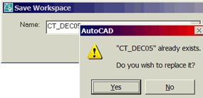 Then: From the dropdown list in the Save Workspace dialog box, choose the current workspace name and click Save.