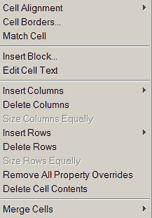 Single-click in a cell - Four grips appear on the cell by which the cell can be sized. The shortcut menu, however, has cell-related options.