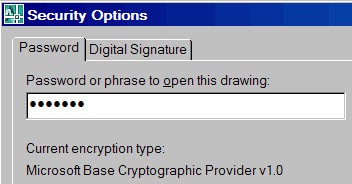 Encrypt Drawing Properties: If this box is checked (next to where you're specifying the password on the Password tab), the AutoCAD documentation states that a password will be required to read the Drawing Properties (). I may have missed something, but I did not find this to be the case.