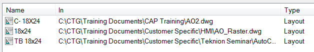 After the search is complete, double-click on the layout you to want access and DesignCenter will then navigate to the drawing matching that search criteria ("18" and a Layout tab in this example).