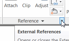 On the Insert tab, click the small arrow on the Reference panel to open the External References Manager.