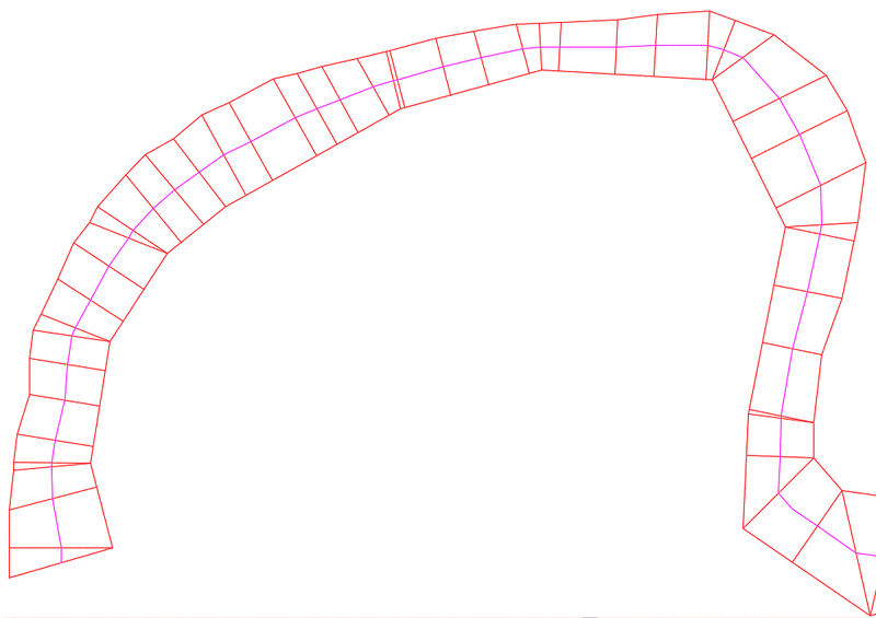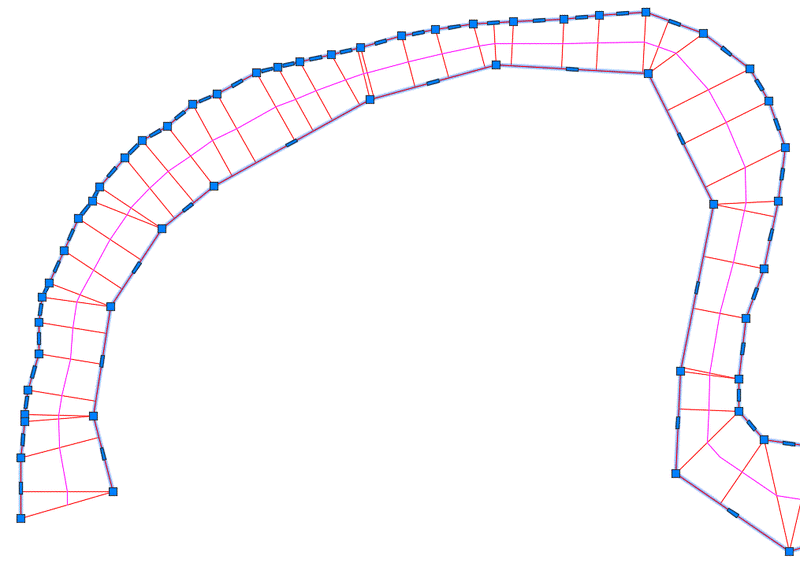 Basically I try to draw a polyline equidistant to the reference lines. To do this, I draw perpendiculars from each point of each polyline to the closest segment of the other. Sometimes several points are concentrated in one of the polylines while in the other polyline there is only one long segment. In these cases, I draw all the perpendiculars that intersect that long segment, but for the last point, I already draw a line to the end of the long segment. When the perpendicular from a point goes to the next segment to which the previous ones were in the opposite polyline, then the perpendiculars must continue being made from the opposite polyline. I suppose it is a bit complicated to explain and understand, so I attach images of what I mean. My method isn't perfect, but it's pretty close. I thought there would be a better method, one that would be more geometrically rigorous than mine. As for Lee Mac's code, I must thank him for sharing his knowledge and his great code I've tested it, and the result is pretty close to what the true axis between the two polylines should be. But it still deviates in the pivot areas. Also, the result varies depending on the order in which the polylines are selected, and this isn't good. A robust method should produce the same result in both cases. My idea was that it should be possible to obtain an axis in which any perpendicular to it is equidistant from the reference polylines. But I'm starting to think this isn't so easy.