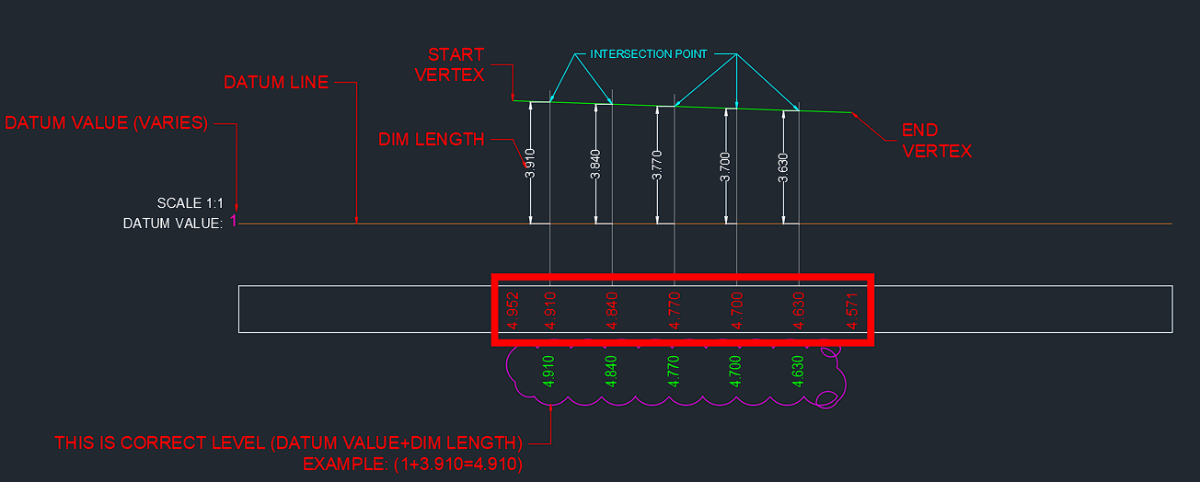 Thanks for your help sir, one issue I notice, if I change the datum value and keep datum line same ,value of intersection point not coming accurate, only start vertex and and vertex is accurate. Note : Same section but change datum value. - Last week