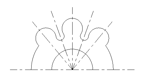 How far should the centers of the radius-10 circles be from the center? In other words, how do you place the tabs (or whatever you call those circular protrusions)? It looks like the left and right sides of the central tab are different. Should they be symmetric? Once you place the tab circles, you should be able to draw the radius-4 circles as tangent to two of the tabs. Then it's just a matter of trimming. Here's what I got with the tabs placed on the diameter-80 arc: -