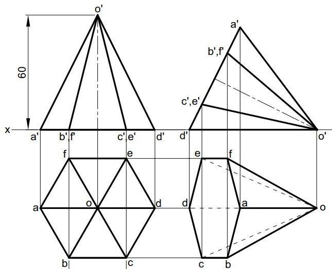 I need to draw hexagonal pyramid like this in AutoCAD. So i used Pyramid command where I got hexagon as top view and a triangular shape at the front view at first. Now I need to turn the first front view as shown in the figure (attached). When I used rotate command, the tracking lines showing angles is not coming. here there is no angle specified. we need to turn it manually so that the o'd' line should be horizontal in the second front view. help me drawing like this in AutoCAD. What i mean is, while in rotate3D command, i selected the object, then VIEW, then specified the base point, then its asking for angle. here angle is not specified. we need to rotate the first front view such that the line O'D' becomes horizontal. any way of doing it. please help. The angle tracking lines are not coming as we rotate. Polar tracking is ON. please help. I need to rotate first front view like the one as in second front view in image shown. Thank you Rotate3D.mp4