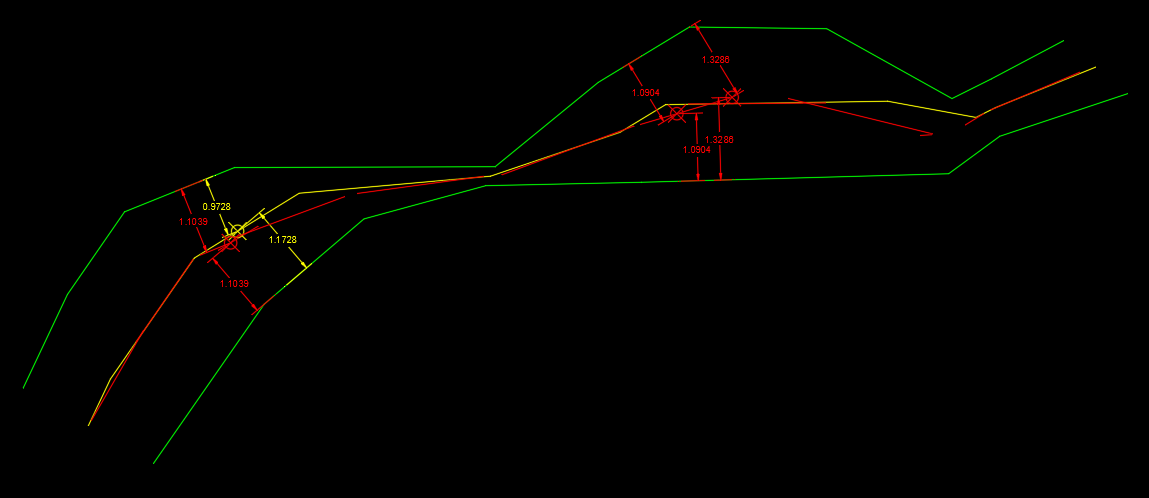 Hopefully I can get back to my LISP today. I did do some experiments with CENTERLINE command in newer AutoCAD (not sure when it was first available), if just Polylines/lines, it gets the center very accurately, good for checking a LISP IMO. This is really a job for Civil 3D/ArcGIS or similar software.