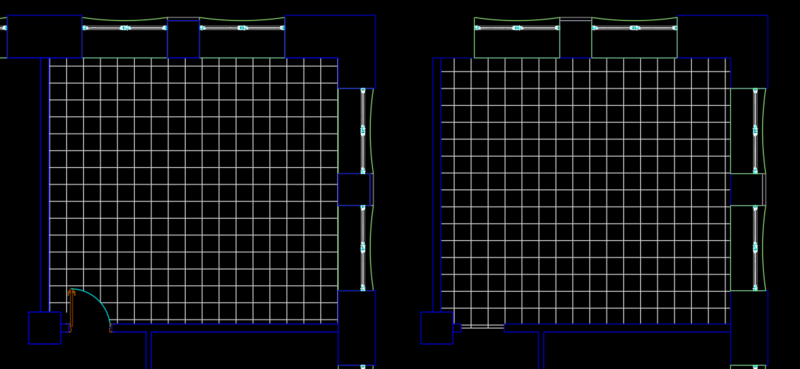 another offset concept 2 options ;; Offset segment for polyline (defun c:OFFSEG ( / *error* $ aa aa* _angle ang ax en ep force_closed i ip k l l1 lst n p p1 px s sc sp vs ) ;;hanhphuc 01.04.2020 ;*offseg_area* - global variable (setq force_closed 1 ;; setting closed=1 , open=0 *error* '((msg) (princ " *cancel*")) _angle '((en x) (angle '(0. 0. 0.) (vlax-curve-getFirstDeriv en x))) ) (while (setq s (ssget "_:S:E:L+." '((0 . "LWPOLYLINE")))) (and (setq en (ssname s 0) p1 (osnap (cadr (grread t 13)) "_nea")) (not (vla-put-closed (vlax-ename->vla-object en) force_closed )) (setq p (trans p1 1 0) i (fix (vlax-curve-getparamatpoint en p)) ep (vlax-curve-getEndParam en)) (>= ep 2) (setq ang (mapcar '(lambda (x) (_angle en x) ) (cond ( (< i 1)(list (1- ep) (1+ i)) ) ( (>= i (1- ep)) (list (1- i) 0)) ( (list (1- i) (1+ i)) ) ) ) ) (setq *offseg_area* (ureal 5 "" "\nEnter area " (cond ( *offseg_area* ) ( 0.000 ) ) ) ) (princ "\nStretching segment.. \n") (while (and p (mapcar 'set '(k p) (grread t 13)) (= 5 k) (vl-consp p) (setq p1 (trans p 1 0)) ) (redraw) (if (vl-some 'not (setq l (mapcar '(lambda (a b / p) (list (setq p (vlax-curve-getPointAtParam en b)) (inters p (polar p a 1.0) p1 (polar p1 (_angle en i) 1.0 ) nil ) ) ) ang (list i (1+ i)) ) l1 (apply 'append l) n (length l1) lst (mapcar '(lambda (x) (nth x l1)) '(0 1 3 2)) ) ) (setq p nil) (if (= *offseg_area* 0.0) (progn (grvecs (apply 'append (mapcar '(lambda (x) (cons (car x) (mapcar '(lambda (x) (trans x 0 1) ) (cdr x) ) ) ) (cons (cons 2 (mapcar 'cadr l)) (mapcar '(lambda (x) (cons 2 x)) l ) ) ) ) ) (princ (apply 'strcat (setq $ (list "\rArea = " (rtos (setq AA* (abs (math:area lst))) 2 2 ) " M\U+00B2 " ) ) ) ) ) (princ (strcat "\rSelect offset side.. ")) ) ) ); while (if (and (/= *offseg_area* 0.00) (setq ip (apply 'inters (apply 'append (reverse (cons '(nil) l))) ) ) (setq AA (abs (math:area (list (car l1) ip (caddr l1))) ) ) (setq Ax ((if (minusp (- AA (abs (math:area (list (cadr l1) ip (cadddr l1)))) ) ) + - ) AA *offseg_area* ) sc (sqrt (/ (abs Ax) AA)) lst (cons (car l1) (append (mapcar '(lambda (x) (polar ip (angle ip (x l1)) (* (distance ip (x l1)) sc ) ) ) (list car caddr) ) (list (caddr l1)) ) ) AA* (abs (math:area lst)) $ (list "\rArea = " (rtos AA* 2 2) " M\U+00B2 " ) ) (equal AA* *offseg_area* 1e-6) ) ;and (princ (apply 'strcat $ ) ) (progn (setq sp (mapcar '(lambda (x) (vlax-curve-getPointAtParam en x) ) (list i (1+ i)) ) px (mapcar '(lambda (` p a) (polar p a (` (/ *offseg_area* (abs (* (sin (- (cadr ang) (_angle en i))) (apply 'distance sp) ) ) ) ) ) ) (if (LM:Inside-p p en ) ;;; UCS some not working (list - +) (list + -)) sp ang ) ) (setq lst (if (= *offseg_area* 0.0) lst (list (car sp) (car px) (cadr px) (cadr sp) ) ) AA* (abs (math:area lst)) $ (list "\rArea = " (rtos AA* 2 2) " M\U+00B2 " ) ) ) ) ;if (if (or (equal AA* *offseg_area* 1e-6) (= *offseg_area* 0.0) ) (entmakex (vl-list* '(0 . "LWPOLYLINE") '(100 . "AcDbEntity") '(100 . "AcDbPolyline") '(70 . 0) (cons 90 (length lst)) (mapcar '(lambda (x) (cons 10 x)) lst) ) ) (if (not (= *offseg_area* 0)) (alert (strcat "Exceed chamfer limit!\nMax = " (if ip (rtos AA 2 2) "???") "\ M\U+00B2" ) ) ) ) ) ) (princ) ) ;This function is freeware courtesy of the author's of "Inside AutoLisp" for rel. 10 ;published by New Riders Publications. ;This credit must accompany all copies of this function. ;;;October 19, 2004 added function chkkwds (see description at end of file) ;* UREAL User interface real function ;* BIT (0 for none) and KWD key word ("" for none) are same as for INITGET. ;* MSG is the prompt string, to which a default real is added as <DEF> (nil ;* for none), and a : is added. ;* (defun ureal (bit kwd msg def / inp) (if def (setq msg (strcat "\n" msg " <" (if (eq (type def) 'REAL) (rtos def 2) (if (eq (type def) 'INT) (itoa def) def ) ) ">: " ) bit (* 2 (fix (/ bit 2))) ) (setq msg (strcat "\n" msg ": ")) ) (initget bit kwd) (setq inp (getreal msg)) (if inp inp def ) ) ;;----------------------=={ Inside-p }==----------------------;; ;; ;; ;; Predicate function to determine whether a point lies ;; ;; inside a supplied LWPolyline. ;; ;;------------------------------------------------------------;; ;; Author: Lee Mac - www.lee-mac.com ;; ;; Using some code by gile (as marked below), thanks gile. ;; ;;------------------------------------------------------------;; ;; Arguments: ;; ;; pt - 3D WCS point to test ;; ;; ent - LWPolyline Entity against which to test point ;; ;;------------------------------------------------------------;; ;; Returns: T if supplied point lies inside supplied LWPoly ;; ;;------------------------------------------------------------;; (defun LM:Inside-p ( pt ent / _GroupByNum lst nrm obj tmp ) (defun _GroupByNum ( l n / r) (if l (cons (reverse (repeat n (setq r (cons (car l) r) l (cdr l)) r)) (_GroupByNum l n) ) ) ) (if (= (type ent) 'VLA-OBJECT) (setq obj ent ent (vlax-vla-object->ename ent)) (setq obj (vlax-ename->vla-object ent)) ) (setq lst (_GroupByNum (vlax-invoke (setq tmp (vlax-ename->vla-object (entmakex (list (cons 0 "RAY") (cons 100 "AcDbEntity") (cons 100 "AcDbRay") (cons 10 pt) (cons 11 (trans '(1. 0. 0.) ent 0)) ) ) ) ) 'IntersectWith obj acextendnone ) 3 ) ) (vla-delete tmp) (setq nrm (cdr (assoc 210 (entget ent)))) ;; gile: (and lst (not (vlax-curve-getparamatpoint ent pt)) (= 1 (rem (length (vl-remove-if (function (lambda ( p / pa p- p+ p0 s1 s2 ) (setq pa (vlax-curve-getparamatpoint ent p)) (or (and (equal (fix (+ pa (if (minusp pa) -0.5 0.5))) pa 1e-7) (setq p- (cond ( (setq p- (vlax-curve-getPointatParam ent (- pa 1e-7))) (trans p- 0 nrm) ) ( (trans (vlax-curve-getPointatParam ent (- (vlax-curve-getEndParam ent) 1e-7)) 0 nrm) ) ) ) (setq p+ (cond ( (setq p+ (vlax-curve-getPointatParam ent (+ pa 1e-7))) (trans p+ 0 nrm) ) ( (trans (vlax-curve-getPointatParam ent (+ (vlax-curve-getStartParam ent) 1e-7)) 0 nrm) ) ) ) (setq p0 (trans pt 0 nrm)) (<= 0 (* (sin (angle p0 p-)) (sin (angle p0 p+)))) ;; LM Mod ) (and (/= 0. (vla-getBulge 