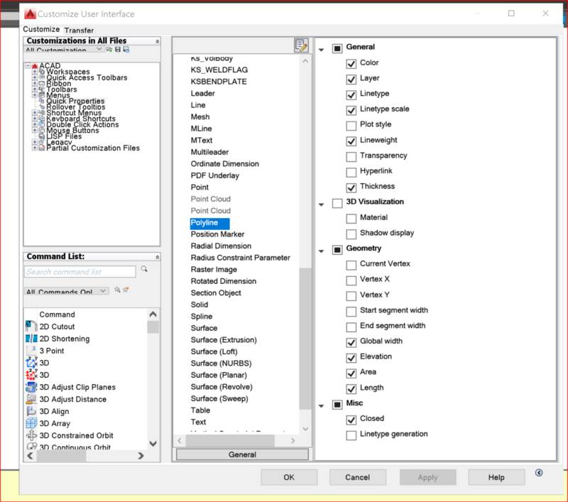 6. Spot on Cad64. Welcome to CADTutor CADare. I am glad to see that I am not the only one who uses Quick Properties, I am lost without them. As you likely already know, by clicking on the right edge of the Quick Properties palette, one can access the Customize menu. On that menu one can customize the information which you wish to be displayed for each of the numerous Object types in AutoCad. If you favor using Quick Properties I highly recommend taking advantage of a little downtime, whenever convenient and setting the Quick Properties so that it works how you want it to. An easy way to get the length and width, on the fly, as shown in the following screenshots is using the Distance command. You don't need to generate any new linework, and it is done with a single command. This is why I always keep my commandline history expanded to reveal all of the information accessed by this functionality. This is even MORE helpful when working in 3D, since the Distance reported will be the true 3D distance, as if you had drawn a 3D Polyline or line, in a non orthogonal perspective. If, like myself you ever find that you have left your QuickProperties Palette outboard (on your second monitor at home?) . Just go into your QuickProperties Settings, and reset your Palette Location to cursor dependent, and that will call it home. I favor using Static because on some Objects, like Dimensions, the Palette is GIGANTIC and I would rather have it out of the way a bit more. I was really happy the day I figured that out, as I use them constantly, really am LOST without them. I hate the regular Properties, because it is data overload, and while comprehensive, it slows me down, having to find what I want buried in so much that I never care about. Customization is the best way to hit the ground running.