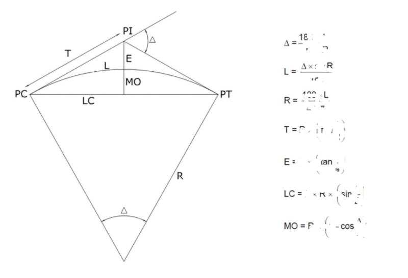 Just get your engineering or surveying handbook out and look up horizontal curve you will find a diagram that has all the variables and how to work out the answers, just draw it and think about old school sin cos pythagoras etc.