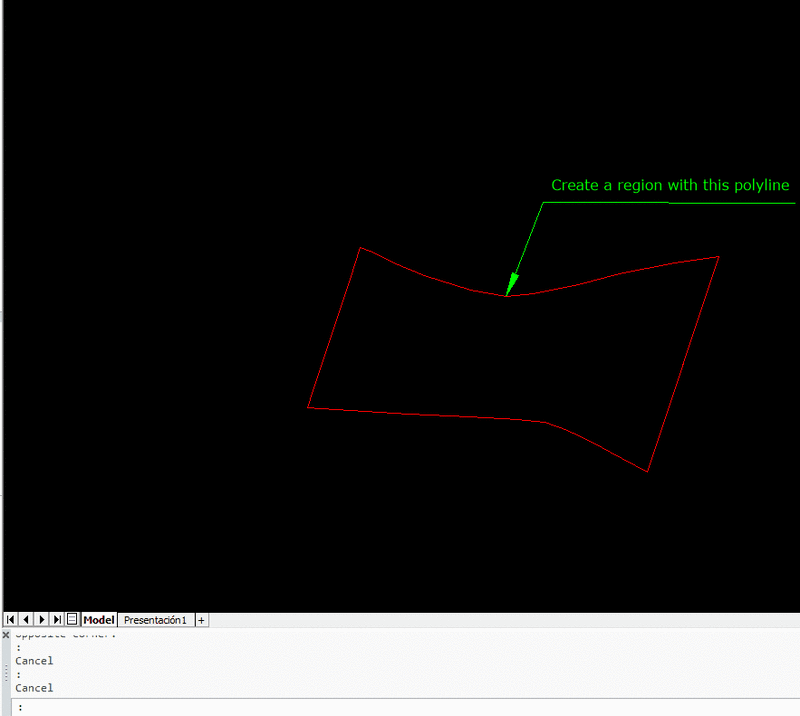 3. The mhupp command works fine, in fact the polyline in question has repeated vertices. I have created a program to remove duplicate vertices from polylines, but it is much easier to use the BOUNDARY command in this case.
