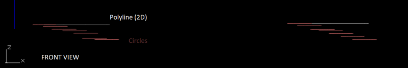 I'm not sure if I understand what you want. Here's a Front view. Those are (normal 2D) polylines, not 3D polylines. And the way I see it only the top circles touch the polyline. The rest don't intersect. Care to further elaborate what you want? Edit: there's a thing called apparent intersection. that's when a projection of the drawing has things intersecting. Is ahat something you want?1 point