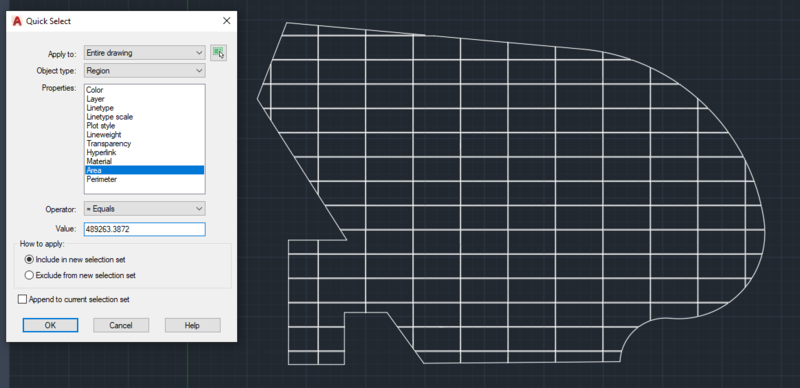 Me again with some more details. here is the array, "big enough" for the outline. What I forgot to say: make the rectangles just a litle bit smaller as you need them, so in the array they doesen't touch each-other Here is my outline, converted to region too That's what I get after using the INTERSECT command, followed by EXPLODE This is what quickselect returned and finaly the final result. Maybe I should have saved a copy of the outline before I converted it to region...1 point