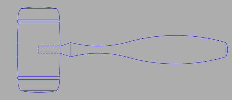 10. However, using the supposition that the end of the band is in line with the mallet head, one can take an arc of radius 1/8", such that the perpendicular bisector of the arc to the chord (saggita) is 1/16". This gives a chord length (height of the band) of 55/256" which is tricky to dimension when seemingly the accuracy is 1/8". Picture doesn't look too bad.