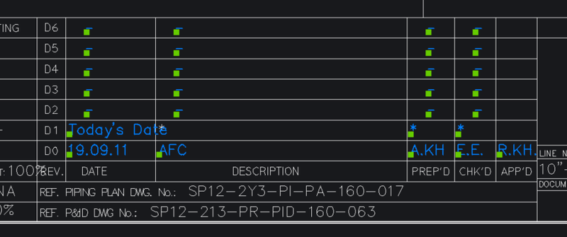 It may be worthwhile still looking at using a Revision Title block rather than individual text. The image shows where you would have attributes they could have a default value like "." or "-", even just leave blank.