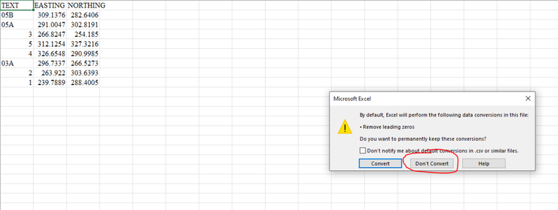 Hi @Ish Try this: (defun c:EXMLD ( / save_location header op ss len i vals data pt pt_x pt_y ss2 data2 data3 val) (setq save_location (getfiled "Select a location for save" "" "csv" 1)) (setq header (strcat "TEXT" "," "EASTING" "," "NORTHING")) (setq op (open save_location "a")) (write-line header op) (setq ss (ssget "X" '((0 . "MULTILEADER")))) (setq len (sslength ss)) (setq i 0) (while (< i len) (setq vals nil) (setq data (entget (ssname ss i))) (setq pt (nth 56 data)) (setq pt_x (cadr pt)) (setq pt_y (caddr pt)) (command "._explode" (ssname ss i)) (setq ss2 (ssget "X" '((0 . "INSERT")))) (setq data2 (entget (ssname ss2 0))) (setq data3 (entget (entnext (cdr (assoc -1 data2))))) (setq val (cdr (assoc 1 data3))) (command "._undo" "1") (setq vals (strcat val "," (rtos pt_x 2 4) "," (rtos pt_y 2 4))) (write-line vals op) (setq i (1+ i)) ) (close op) (princ (strcat "\nThe data was saved in " "\"" (vl-filename-base save_location) "\"" ".")) (princ) ) To sort a list, after saving file, is much easier to do in excel using a "filter" above "Text" column. If this happen on picture 1, use the "Don't convert". Best regards.1 point