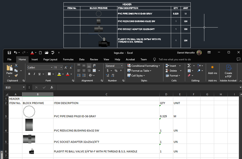 Sorry, I noticed your running BricsCAD 2021? If so, I’m sorry to say only v24-v25 is supported. Or maybe you forgot to update your profile? 1, head over to https://github.com/CEXT-Dan/PyRx?tab=readme-ov-file#installation and have look at the project 2, Download and install 3.12.10 x64 from https://www.python.org/downloads/windows/ (all users is NOT checked, and PATH is checked) 3, Open up PowerShell and type “pip install cad-pyrx” without the quotes. 4, in BricsCAD, type “appload”, navigate to: “AppData\Programs\Python\Python312\Lib\site-packages\pyrx\RxLoaderV25.0.brx” 5, Make sure it’s loaded, type “pyload” at the bricscad prompt 6, if the load dialog box shows, then were successful so far 7, close bricscad 8, back in powershell type “pip install openpyxl” , this will install the excel library. 9, copy paste the sample code above into a file into a text file, “myfirstmodule.py” 10, using a text editor, edit the paths in the sample, maybe rename the “doit” command 11, open BricsCAD, type in “pyload”, load your module, run your new command If you get this far, you might want to grab a python editor like VsCode and install the python plugins1 point