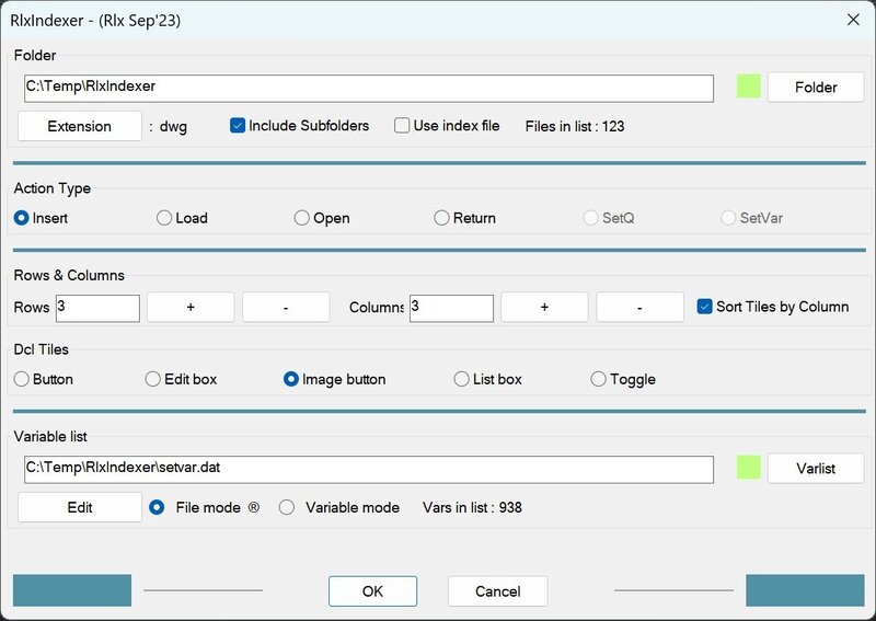 I've created a tool to assist me with a mammoth job I'm working on right now. I have to dig through an enormous amount of folders and data to catalog everything and search for lost and relevant data , in all sorts of format , dwg , doc , excell etc. Purpose of app I gave birth to this time is to present data in whatever form that's best for daddy (or mommy? ... nah dragons don't have this problem) Anyways , I'm on a quota so have to deliver certain amount of data in a certain amount of time and have to put in spare time when behind schedule so no time to explain everything so I hope interface explains itself. Also can't say for certain I've killed all bugs because ink is still wet. So short version : start app , type h for help , s for setup in Main dialog. In setup dialog you can create some test drawings or variables. Files can be represented as button , image_button , edit_box, list_box or toggle. App can also work in data mode. In main dialog you select folder (with drawings or doc's etc) , next extention (dwg, doc, xls ext) , action type (insert , open ...) and dcl type (button, edit_box etc) and ok. New dialog is created : Run dialog. here you can also type h for help. You can type r to rotate dialog , 4 = smaller , 6 is wider , 8 = higher , 2 = less higher and if dcl type is image_tile you can also use + & - keys to resize slides. Oh , thinks save button doesn't work yet. What else to tell... well , haven't done enough testing probably , and time will tell if this is gonna help me to achieve my goals or if its just another useless stupid program. I don't expect I will have much time for chitchat so have fun or trashcan... RlxIndexer.lsp4 points