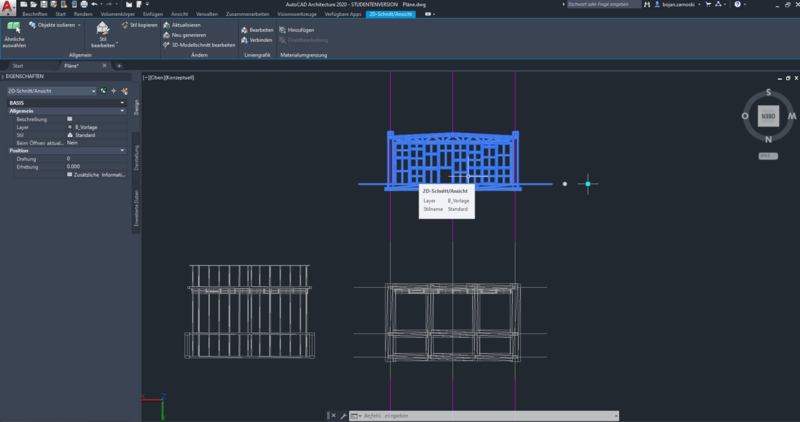 Hello fellow Autocad users, I've recently recieved a messy 3d model (consisting of various geometry types) in order to draw section plans from them. First I tried to generate a floorplan with Autocads "Generate Section/Elevation" tool, thus recieving the projection as intelligent object. In order to draw the plans cleanly from the messy projection I want to transform the projection into a linegrafic, but I can't find a way to edit the projections without crashing Autocad. I also can't use flatshot since the projection is not a Brep. Is there any way to transform the projection into a line grafik, or another alternative to generate cross sections? I've attached an image to depict the problem (I use a german version of AutoCad architecture 2020). Thank you in advance! -