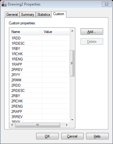 Hey all, I am working to set up a lisp where the user can edit the titleblock, update revblocks. We have templates that use the "custom" tab on the drawing properties box that tie into the titleblocks we use. I'm looking to just make it so the user can use this lisp instead of opening the dwgprops box everytime. Here's what the dwgprops box looks like: This is what I got so far: (defun c:TB () (if (setq Opt (getint "\nDo you want to: 1- Update Titleblock 2- Update RevBlock 3- Update Drawing Titles: " ) );;user input for variable "opt" (progn (cond ((= opt 1);;if user picks to update titleblock (setq titletop (getstring "\nWhat is title top? ")) (setq titlemiddle (getstring "\nWhat is title middle? ")) (setq titlebottom (getstring "\nWhat is title bottom? ")) ) ((= opt 2);;if user picks to update revblock (setq row (getint "\nWhich revision row do you wish to edit? ") ) (progn (cond ((= row 1) (setq 1rowrev (getstring "\n1st row rev: ")) (setq 1rowyy (getstring "\n1st row year: ")) (setq 1rowmm (getstring "\n1st row month: ")) (setq 1rowdd (getstring "\n1st row day: ")) (setq 1rdesc (getstring T "\n1st row description: ")) (setq 1rowby (getstring "\n1st row by: ")) (setq 1rowchk (getstring "\n1st row chk: ")) (setq 1roweng (getstring "\n1st row eng: ")) (setq 1rowapp (getstring "\n1st row app: ")) ) ((= row 2) (setq 2rowrev (getstring "\n2nd row rev: ")) (setq 2rowyy (getstring "\n2nd row year: ")) (setq 2rowmm (getstring "\n2nd row month: ")) (setq 2rowdd (getstring "\n2nd row day: ")) (setq 2rdesc (getstring T "\n2nd row description: ")) (setq 2rowby (getstring "\n2nd row by: ")) (setq 2rowchk (getstring "\n2nd row chk: ")) (setq 2roweng (getstring "\n2nd row eng: ")) (setq 2rowapp (getstring "\n2nd row app: ")) ) ((= row 3) (setq 3rowrev (getstring "\n3rd row rev: ")) (setq 3rowyy (getstring "\n3rd row year: ")) (setq 3rowmm (getstring "\n3rd row month: ")) (setq 3rowdd (getstring "\n3rd row day: ")) (setq 3rdesc (getstring T "\n3rd row description: ")) (setq 3rowby (getstring "\n3rd row by: ")) (setq 3rowchk (getstring "\n3rd row chk: ")) (setq 3roweng (getstring "\n3rd row eng: ")) (setq 3rowapp (getstring "\n3rd row app: ")) ) ((= row 4) (setq 4rowrev (getstring "\n4th row rev: ")) (setq 4rowyy (getstring "\n4th row year: ")) (setq 4rowmm (getstring "\n4th row month: ")) (setq 4rowdd (getstring "\n4th row day: ")) (setq 4rdesc (getstring T "\n4th row description: ")) (setq 4rowby (getstring "\n4th row by: ")) (setq 4rowchk (getstring "\n4th row chk: ")) (setq 4roweng (getstring "\n4th row eng: ")) (setq 4rowapp (getstring "\n4th row app: ")) ) );;end cond );; end progn );;end opt 2 ((= opt 3);;if user picks to update drawing titles, still figuring this section out ) );;end cond );;end 1st progn );;end 1st if );;end defun What I'm having the hardest time figuring out is how to take the user inputted values and place them into the correct custom drawing properties, this only applies to the revbock updates. I also don't know how to take the title user inputs and put them into the correct drawing property location (although I figure they are closely related) I did find this list which may prove to be helpful in the hunt, but I don't know how to translate it into something useful... Thanks for any and all help!- 12 replies