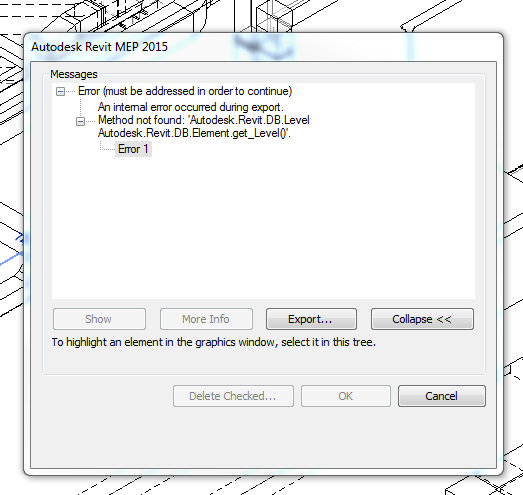 When trying to use the 'Revit Fabrication Export' Addin i get the following message when trying to save out as a RIF. Steps so far. Select the required system store design line & graphical element Select 'out' Save As 'Rif' ... then i get the error message. My goal is to get the Revit file into Autodesk Fabrication. Any help would be much appreciated
