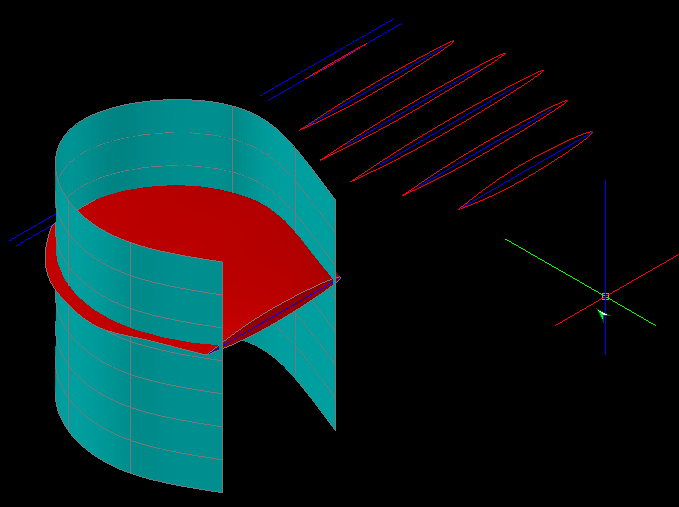 Hi all, Problem: Green Surface = Extruded Surface Red Surface = Lofted Surface I'm trying to subtract the green surface from the red surface. Commands Tried: - Subtract - Surftrim So far these two didn't work out very well. "Subtract" didn't do anything at all, while "Surftrim" helped me to get rid of anything outside of the cutting surface. But the problem: After Surftrim, the lofted surface's inside shows out, and I found out that it's not solid/filled inside, but rather it's a hollow space inside the lofted surface. I'm trying to create a fan blade, and using that green surface as a shape-maker. Anyone has any idea? P.S. The original post and picture owner is in this link http://www.cadtutor.net/forum/showthread.php?47775-How-to-draw-table-fan-blade -