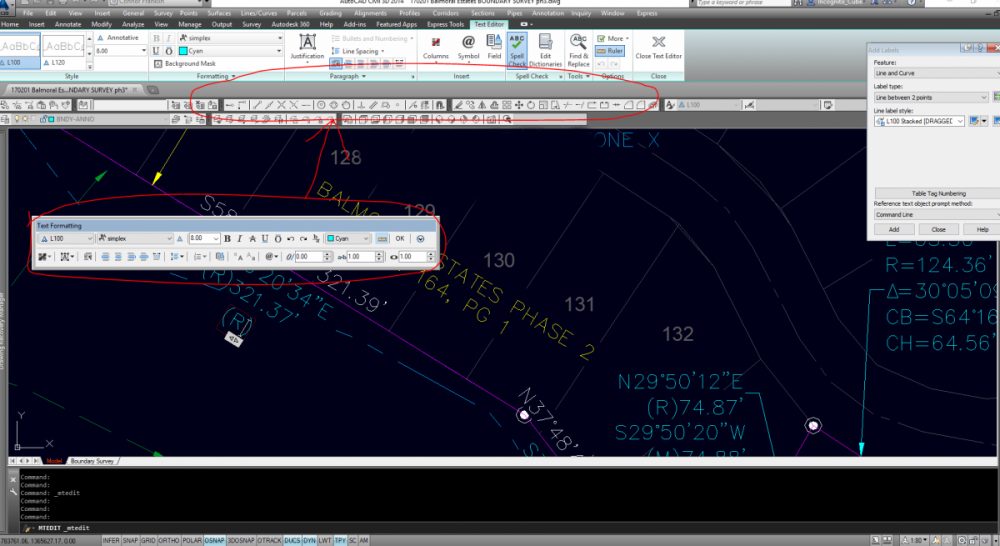 Quick one here... Is there any way to lock the location of the Text Formatting box that pops up while editing text in C3D 2014? I'd prefer it to pop up over my Ribbon, rather than in the actual Drawing Window. See below for clarification.