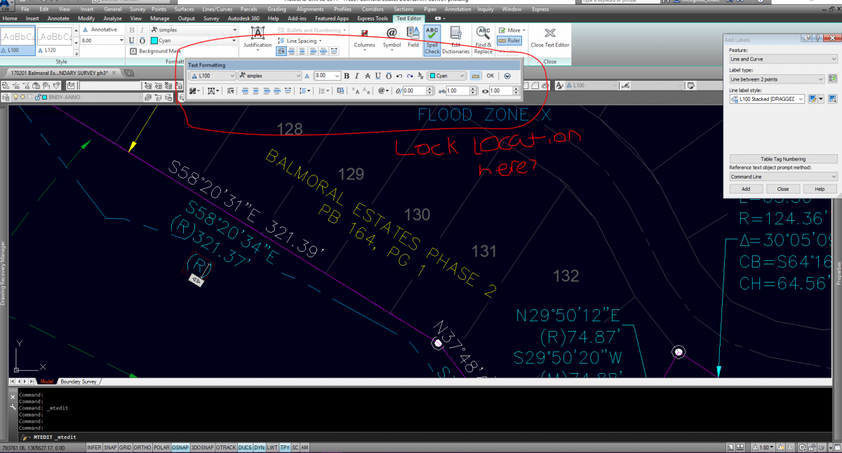 Quick one here... Is there any way to lock the location of the Text Formatting box that pops up while editing text in C3D 2014? I'd prefer it to pop up over my Ribbon, rather than in the actual Drawing Window. See below for clarification.