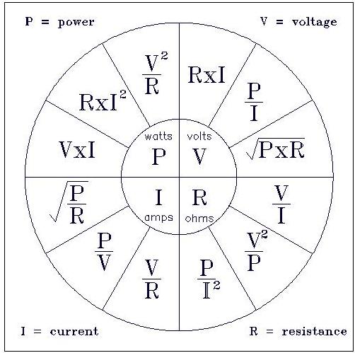 The Buzzard Posted June 6, 2009 Author Posted June 6, 2009 Here they are: P = VxI OR (setq P (* V I)) P = RxI² OR (setq P (* (* I I) R)) V² P = – OR (setq P (/ (* V V) R)) R V = RxI OR (setq V (* R I)) P V = – OR (setq V (/ P I)) I ___ V = √PxR OR (setq V (sqrt (* P R))) V R = – OR (setq R (/ V I)) I V² R = – OR (setq R (/ (* V V) P)) P P R = – OR (setq R (/ P (* I I))) I² V I = – OR (setq I (/ V R)) R P I = – OR (setq I (/ P V)) V _ √P I = - OR (setq I (sqrt (/ P R))) R Quote