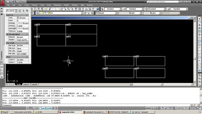 techjunkie09 Posted July 20, 2009 Posted July 20, 2009 i have a script that draws a series of boxes using the basic structure (setq pt1 (getpoint "\nClick the location of the top-left corner")) (setq pt2 (list (+ width (car pt1)) (cadr pt1) 0.0)) (setq pt3 (list (+ width (car pt1)) (- (cadr pt1) height) 0.0)) (setq pt4 (list (car pt1) (- (cadr pt1) height) 0.0)) (command ".pline" pt1 pt2 pt3 pt4 "Close") with subsequent boxes being based on the location of that start point, i've been having the points print to the command window as u can see in the attached screen shot and they are always correct. Basically the screen shot is of the same function run twice and in one it operates as expected and has 4 boxes with spacing between them, in the other it for some reason increases the size of some of the boxes and makes them all connect, its driving me nuts because its the EXACT SAME FUNCTION just executed at two different coordinates. Any ideas? i've already tried (command "line" pt1 pt2 pt3 pt4 "Close") (command "line" pt1 pt2 pt3 pt4 pt1 "Close") (command "line" pt1 pt2 pt3 pt4 pt1 "Cancel") plus the mtext labels are based off the top left corner and they always appear in the right spots, so i'm 99.9% sure its not a problem with the numbers i'm feeding it Quote