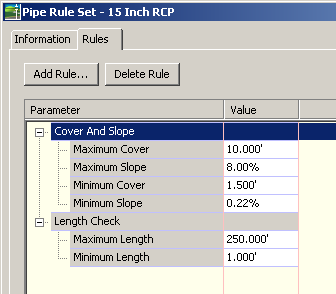 rustysilo Posted August 10, 2009 Posted August 10, 2009 I know you can set min. cover, not sure about max. without looking. On the length I believe there is a max. length, not sure about min. length. Look around for that in your pipe rules. I'll check mine (using 2008) too. Quote