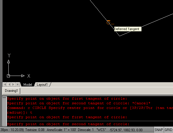 alanjt Posted October 20, 2009 Posted October 20, 2009 I think that there are an infite number of circles that fit your description. Try draw - circle - tan tan radius and specify different radiusesessss. Glen Just as Glen said, circle, Tan, Tan, Radius will yield infinite radii. Command: c CIRCLE Specify center point for circle or [3P/2P/Ttr (tan tan radius)]: t Specify point on object for first tangent of circle: Specify point on object for second tangent of circle: Specify radius of circle: 25 Quote