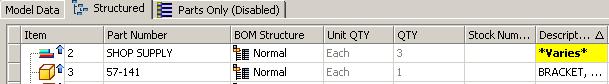 mattcai Posted November 4, 2009 Posted November 4, 2009 Hi guys, I have a question about BOM Structure. In an assembly, there are 3 parts have no real part number, and I input "Shop Supply" as part number in "Properties/Project/Part Number". But they have different descriptions. In "Bill of Material/Structured/BOM Struture" of the assembly, these three parts show in same row, because they have the same "part number" -Shop Supply. The description column shows "Varies" (Fig 1). are there some way I could keep these three parts seperated in the BOM (Fig 2), although they have the same "part number"? Thank you. Quote