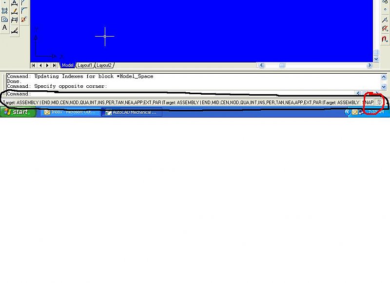 dieridenhard Posted March 30, 2010 Posted March 30, 2010 I am having a problem with my status bar/tray at the bottom of the screen. The one located under the command line that has the SNAP, ORTHO, POLAR, ect buttons. I attached a jpg pic of what I am getting. The tray is getting forced over by command/information and will not return to where I can use them. I have no clue what that portion of the tray is even called. It is very fustrating so any help would be appreciated. Running AutoCAD Mechanical 2004 Thanks Quote