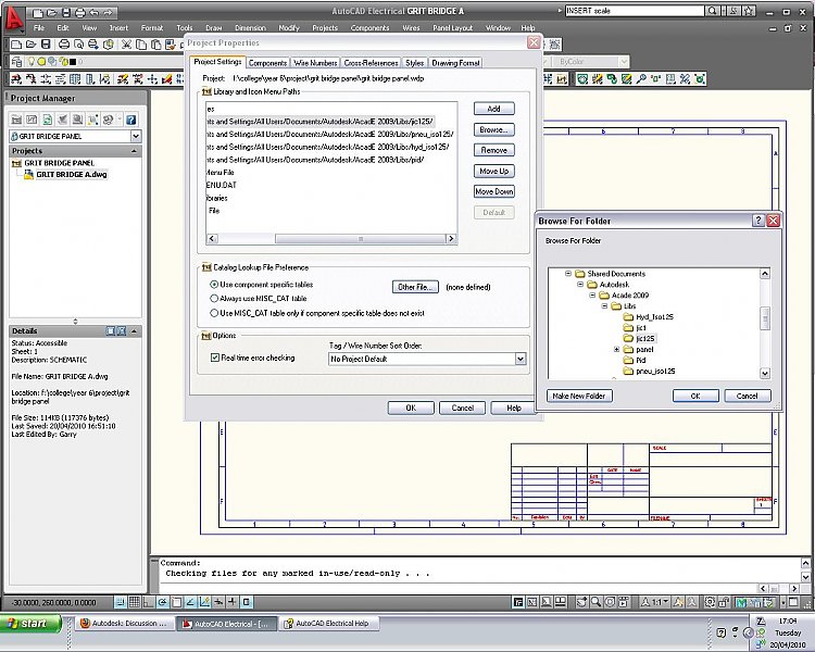 waterhg Posted April 20, 2010 Author Posted April 20, 2010 It appears I am using the wrong components library as I opened up a new drawing using JIC template and the components were the correct size. I then went to check the component library location under Schematic Libraries in the Project Settings tab under Project Properties and it is indeed the jic125 lib. However, i cannot seem to change this to IEC, when browsing the only libraries i can find are jic5 and jic125. I presume ACADE comes with this libs pre-installed? Thanks, Garry P.S. I have included a screenshot showing path files etc. Quote