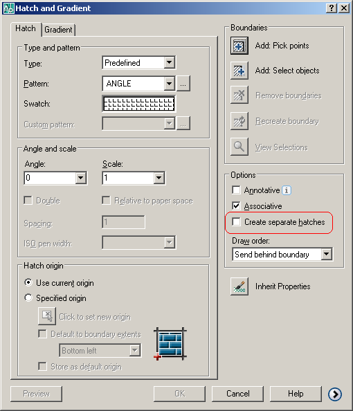 berol Posted April 27, 2010 Author Posted April 27, 2010 Sounds like you created the hatch as one object instead of multiple. Thankfully it's an easy fix.Double-click on your hatch or type HatchEdit and select the hatch then check the Create Separate Hatches option. [ATTACH]19264[/ATTACH] When I enter hatchedit my dbox doesnt have Separate Hatch or anything that appears to give that option. Is there another type of fix? Thanks again Quote