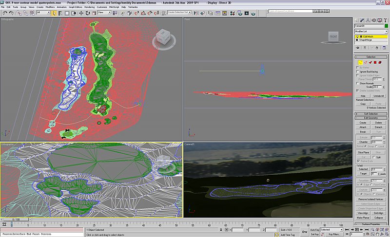 diggers Posted April 29, 2010 Posted April 29, 2010 Hi folks, Im a bit new to this so bare with me. I was told the best place to go was on the net so I'll try to explain my problem. Im looking to create a flythrough of a golf course. I already use a program called teramodel visualiser, but I've gone as far as I can go and its limited software. I have all of the contour plans drafted in Autocad 2007, with eastings, northings and elevations. Now when I import into 3ds max (2009) I can see all my lines but I cant seem to make it into a mesh, or a surface, they are just floating lines. I have tried numerous turorials, but none of them seem relevant to my version of 3ds max. I was also told it would be better to do the model in autocad but I spent two days on it and it seems im going nowhere. Can anyone advise me the best way to convert my contours into a solid surface. Any hhelp would be greatly appreciated. Thanks Tom Quote
