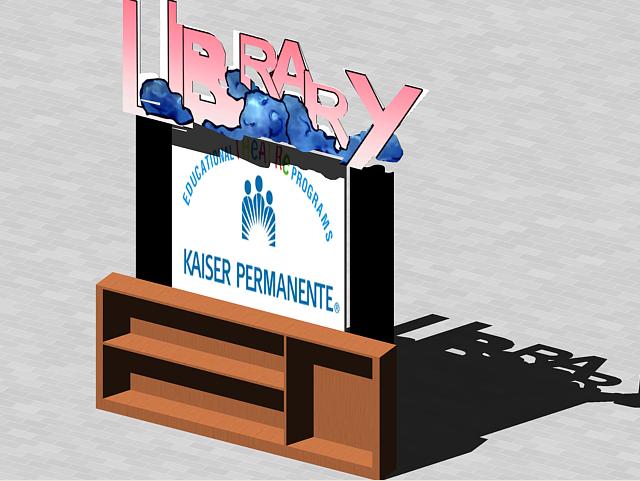 bludmer Posted June 4, 2010 Author Posted June 4, 2010 Thanks for your help. I can't seem to find a "Fit to object", is that the same as "fit to gizmo"? However, I did have some success with the planar mapping. (SETUV) I've attached a rendering of the object. The "Library" header is the object, and there is a painted rendering of that object which I need to attach to the surface. This is as close as I could get it...Thanks again. Quote