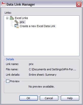 rvpas Posted June 17, 2010 Posted June 17, 2010 I am back I used data extraction and link data No problem when I print. But when you open Externals reference the link with excel it still here Maybe that is the problem ? Or in Data link manager, check if you have got some excel link. (see image) What do you think ? Quote