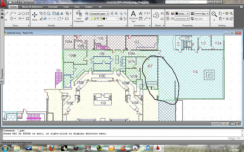 numberOCD Posted July 1, 2010 Posted July 1, 2010 If you select the hatch pattern in room 107, is it showing the hatch pattern in 113 selected as well? If so, you have to the two rooms as a one hatch pattern; if not, they are separate hatch patterns. If they are the same hatch pattern, there is a break in the perimeter line of 107. You can either try to find the break by expanding (command: TRIM then hold SHIFT while clicking lines and polylines) and trimming (command: TRIM and just clicking the lines NOTE: you can keep clicking on different lines to expand and trim them during the same activity of the TRIM command) the lines, or you can draw a polyline around the room as a temporary/permanent boundary line. I would advise the former of the two. With lines fixed or temporarily/permanently placed, redo your hatch patterns. Good luck! Quote