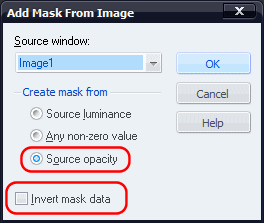 Well, I used PaintShop in my earlier post and it has this option where you can chose the source opacity and even invert the mask data:
