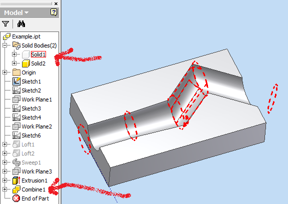 JD Mather Posted July 19, 2010 Posted July 19, 2010 [ATTACH]21815[/ATTACH] The attached is an example of the same issue, but the original was too big to attach. Essentially I want Solid 1 to cut into Solid 2 and for Solid 1 to stop at a set elevation. Thanks I don't understand the "stop at set elevation" part of the problem. To cut one part from another you can use the Combine tool with cut option (and checkmark to preserve original). To extrude to an object the terminating object must, of course, completely terminate the extrusion. Sounds like you might what surface body to terminate the extrusion. You can make file size much much smaller by first pulling the red End of Part marker to the top of the browser, hiding all features, then save, then zip. Maybe your real parts would be better for answering the second part of your question. Quote