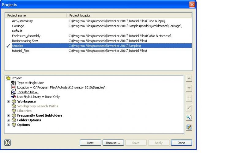 JD Mather Posted August 28, 2010 Posted August 28, 2010 You can set up one master project or a project for each job. To set up a master project create a folder and then create a project that points to that folder. Then create sub folders for each job. or Create a folder of each job and create project for each job that points to the appropriate folder. Because Inventor files are hyperlinked to each other this method helps Inventor quickly find the files. There are other considerations associated with Projects, but at this point you should just worry about getting one set up. To change projects you cannot have any files open. Double click on the project you wish to have active from the list. You will see a checkmark next to the active project. Quote