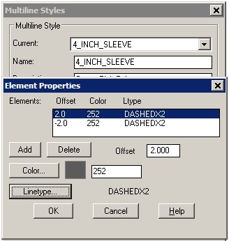 Hap Posted September 24, 2010 Posted September 24, 2010 I created a Multiline Style and named it "4_Inch_Sleeve" and I defined it with offsets 2.00 and -2.00 which (according to my book) should give it pick points between each line but the pick points are at the ends of the top line. What I'm I doing wrong? I would also like to have longer dashes. Do I need to create a new linetype or edit and rename the one I'm using? Quote