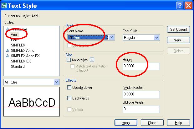 lpseifert Posted September 24, 2010 Posted September 24, 2010 You need to make a Text style named Arial using the Style command. Having the font file Arial.ttf on your computer isn't enough. Quote